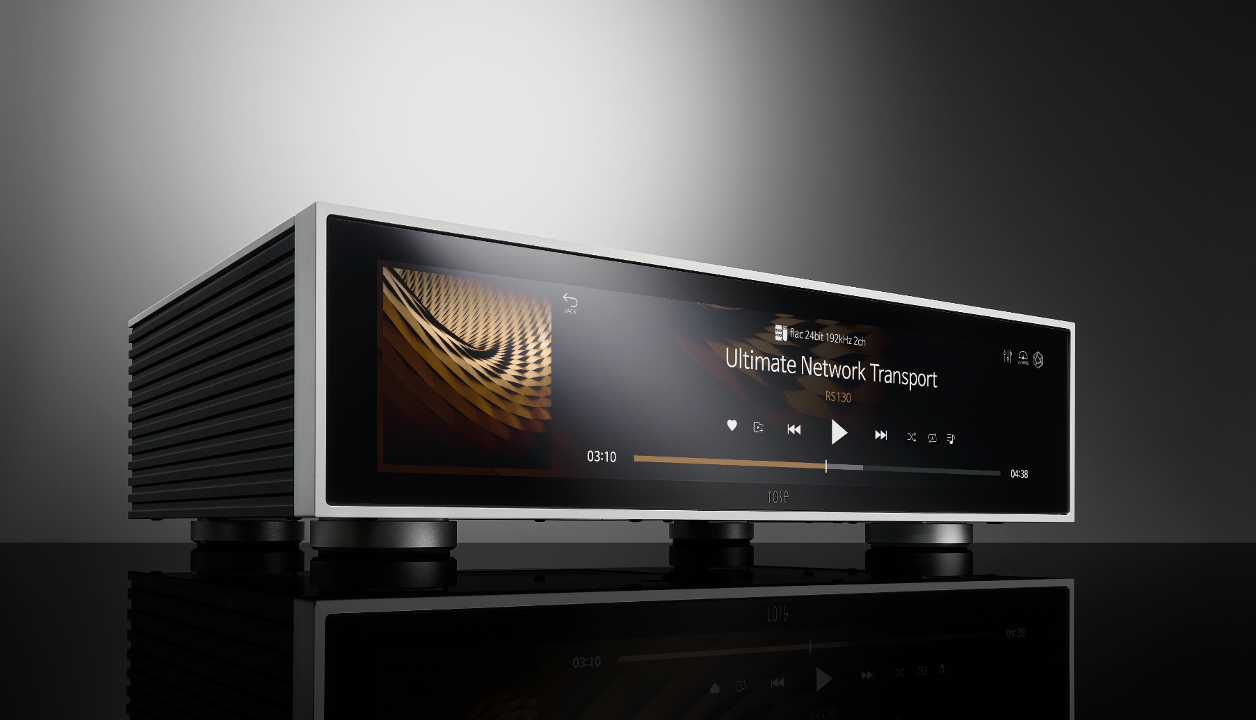 The HiFi Rose RS130 is a high-end network transport designed to deliver an ultra-clean digital audio signal to an external DAC. It does not include a DAC, but instead focuses entirely on producing the highest-quality digital output with extremely low noise and jitter.